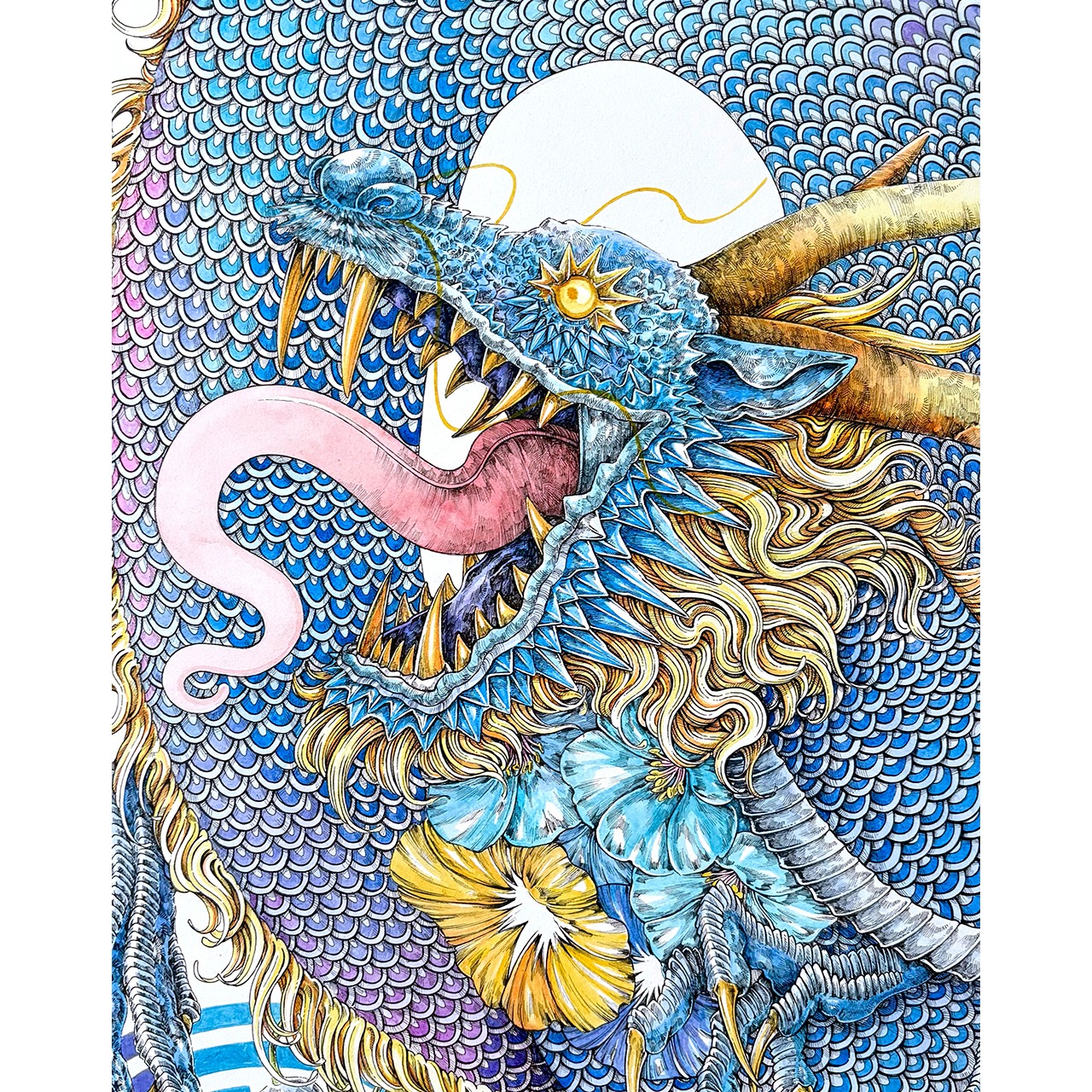 画材:木製パネル、透明水彩絵の具、ペン