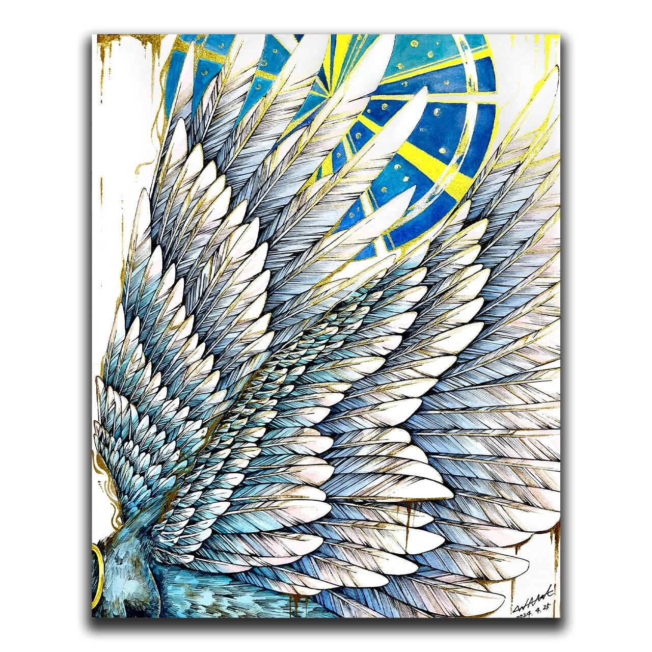 画材:木製パネル、透明水彩絵の具、ペン